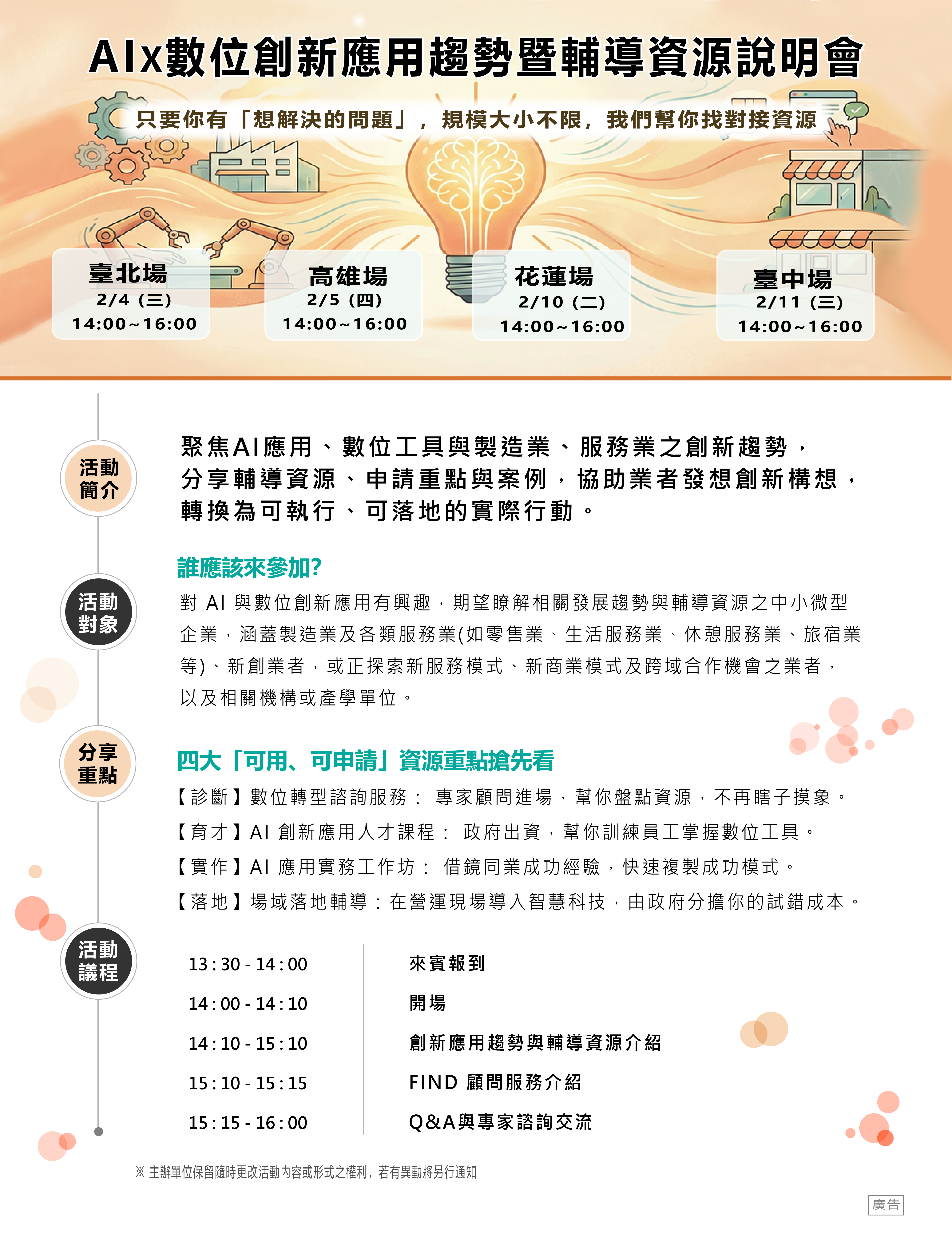 【AI × 數位創新應用趨勢暨輔導資源說明會】現正開放報名中‼️